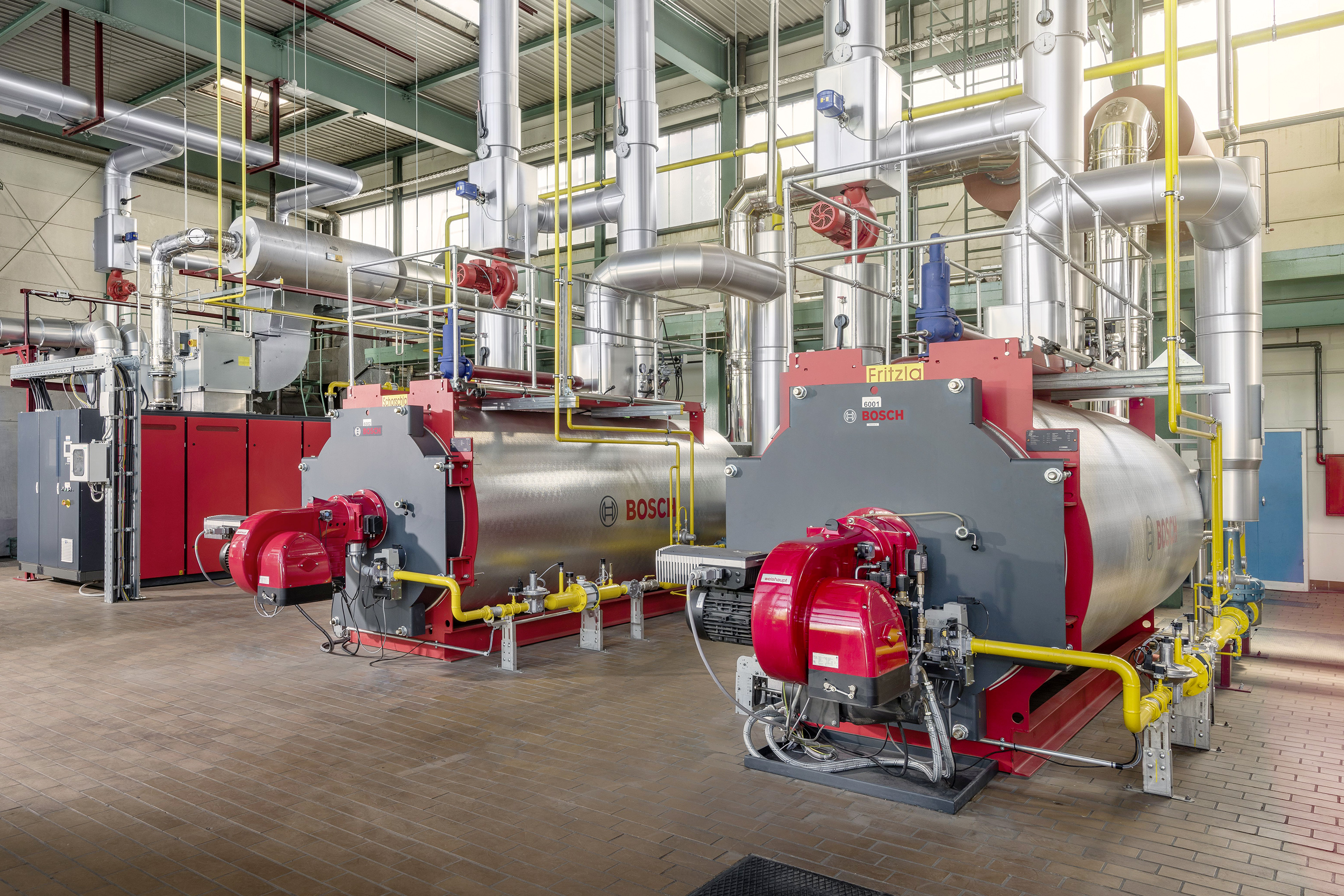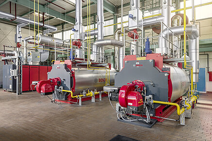Die Hauptwärmelieferanten bei KSB waren ursprünglich zwei Dampfkessel mit je 9,3 MW aus dem Jahr 1974. Eine Analyse ergab, dass durch den Austausch der Altkessel und eine Umstellung auf Warmwasserbetrieb wesentliche Einsparpotenziale erzielt werden können. Die bestehende Anlage war für die tatsächliche Leistungsabnahme mittlerweile erheblich überdimensioniert: Kontinuierliche Effizienzmaßnahmen und Modernisierungen am Standort Pegnitz haben im Verlauf der Jahre den Wärmebedarf reduziert. Lag die Gesamtwärmeleistung der bisherigen Dampfkessel bei 18,6 MW, verfügen die beiden Neukessel jetzt über 8,4 MW. Ein Kessel ist mit einem Weishaupt monarch® Gasbrenner WM-G 30 ausgestattet. Der zweite Kessel