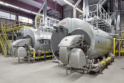 Deux brûleurs monoblocs Weishaupt WKmono 80 en exécution 3LN multiflam® d'une puissance de 10,9 MW chacun (un brûleur bi-gaz et un brûleur bicombustible) transforment les combustibles en chaleur industrielle. Ils convainquent par leurs émissions de NOx de maximum 75 mg/m3, nettement inférieures aux valeurs limites applicables depuis le 1er janvier 2025 selon la directive UE 2015/2193.