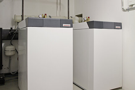 Ce bâtiment futuriste et clairement structuré est équipé d'une technique de chauffage innovante. La centrale de chauffage et d'eau chaude sanitaire installée sur le toit est équipée d'une double cascade : deux chaudières à condensation au gaz Weishaupt Thermo Condens® WTC-GB (de 120 kW chacune). Grâce à leurs dimensions compactes, leur faible poids et leur dispositif de transport soudé, les chaudières ont pu être transportées facilement par ascenseur jusqu'au toit et installées dans la chaufferie.