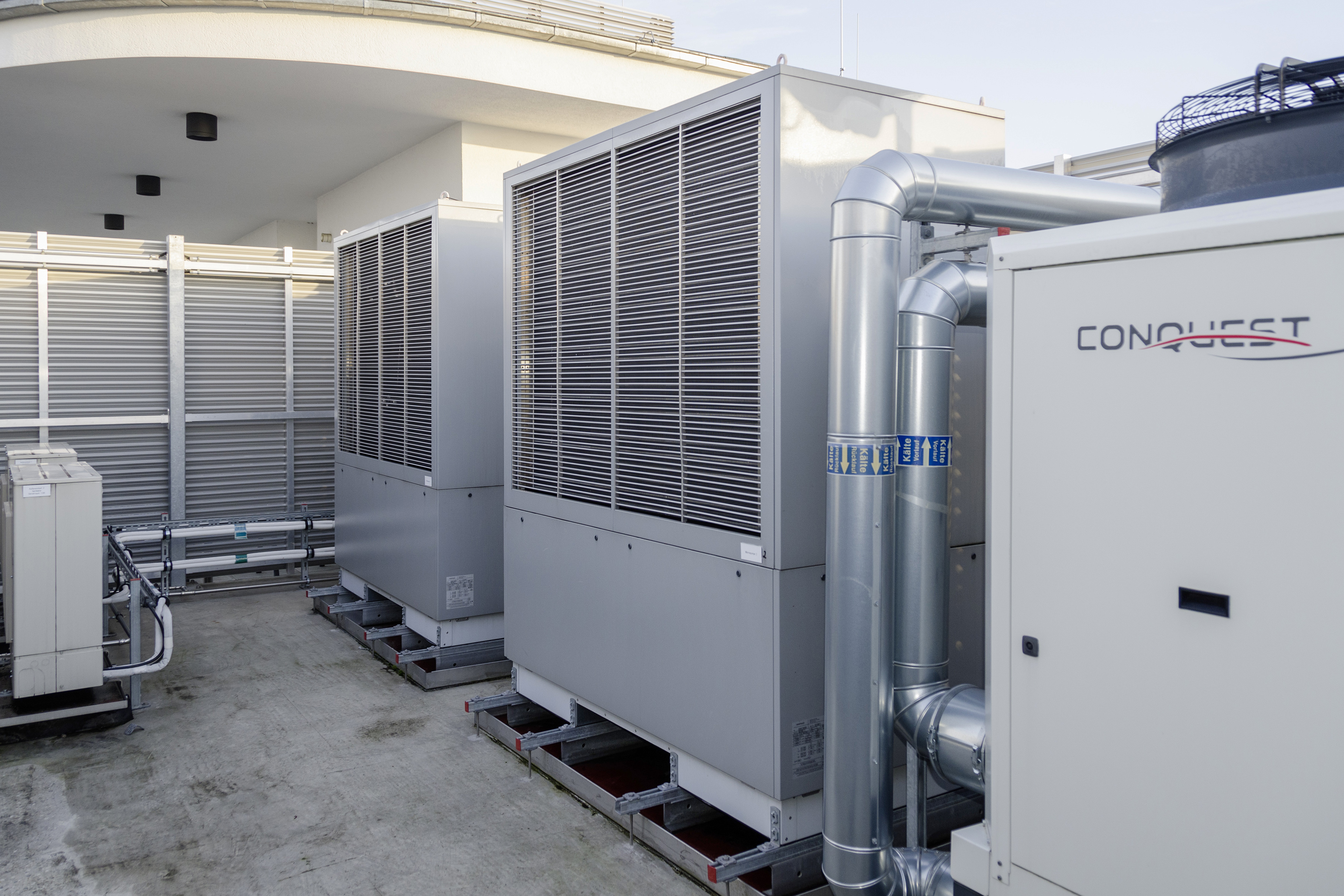Deux pompes à chaleur air/eau WWP L 60 ADR fournissent la chaleur nécessaire à la charge de base et assurent le rafraîchissement pendant les mois d'été.