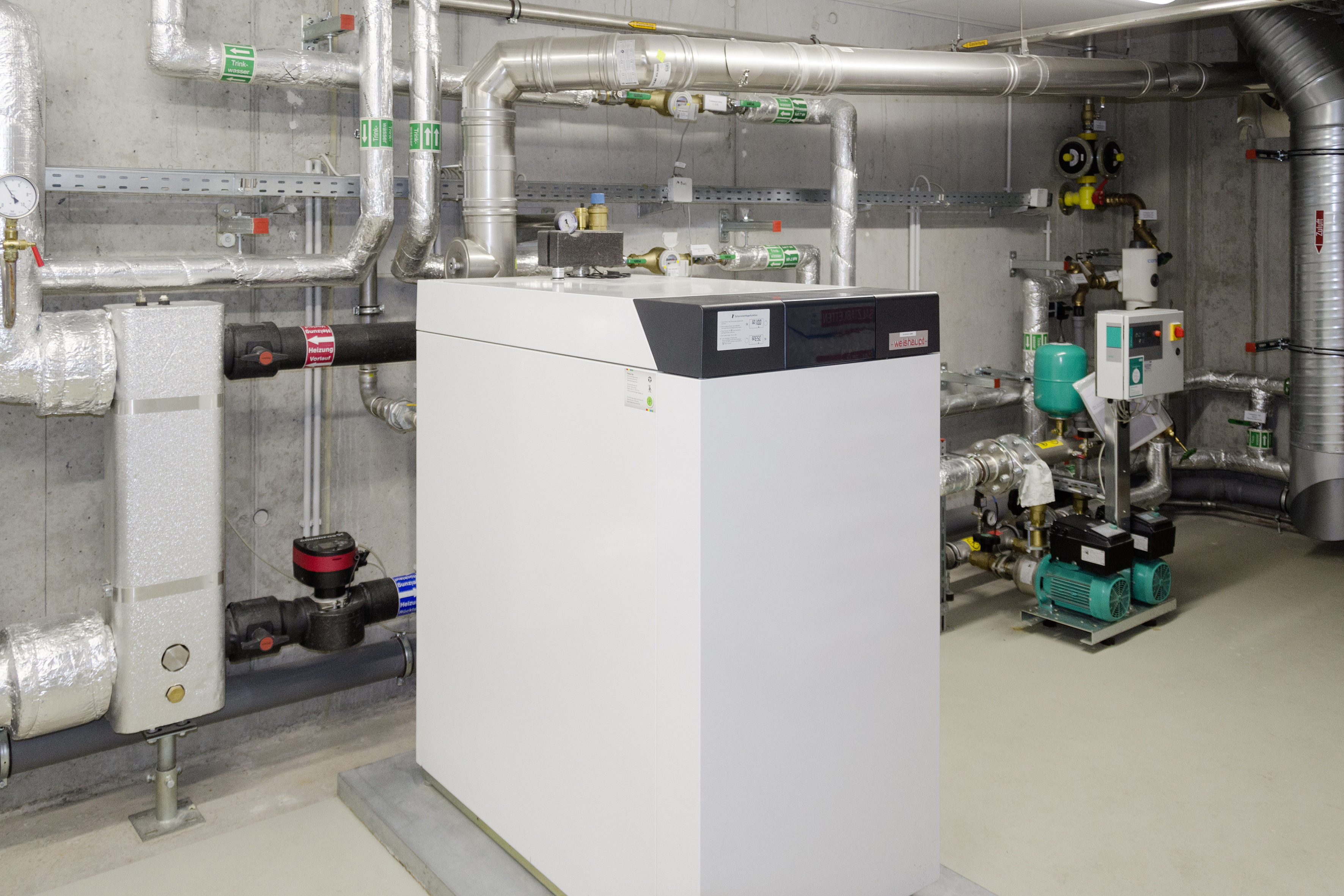 Une chaudière à condensation au gaz Weishaupt Thermo Condens® WTC-GB 210-A approvisionne le chauffe-eau et couvre les pics de consommation en chauffage.