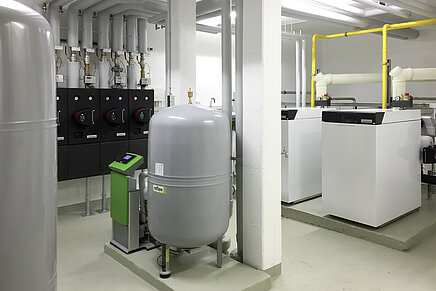 Deux chaudières à condensation au gaz Weishaupt Thermo Condens® à haut rendement, chacune d'une puissance de 300 kilowatts, ont été installées dans la chaufferie. Elles garantissent de faibles coûts de fonctionnement et donc un prix avantageux pour le chauffage. De plus, la copropriété peut se réjouir de contribuer à la protection de l'environnement grâce à la réduction des émissions. Les émissions de CO2 de ce complexe d’environ 140 tonnes sont désormais inférieures d'environ un tiers à celles générées par l'ancien système de chauffage au mazout. De plus, la chaleur perdue par la cheminée est nettement réduite.