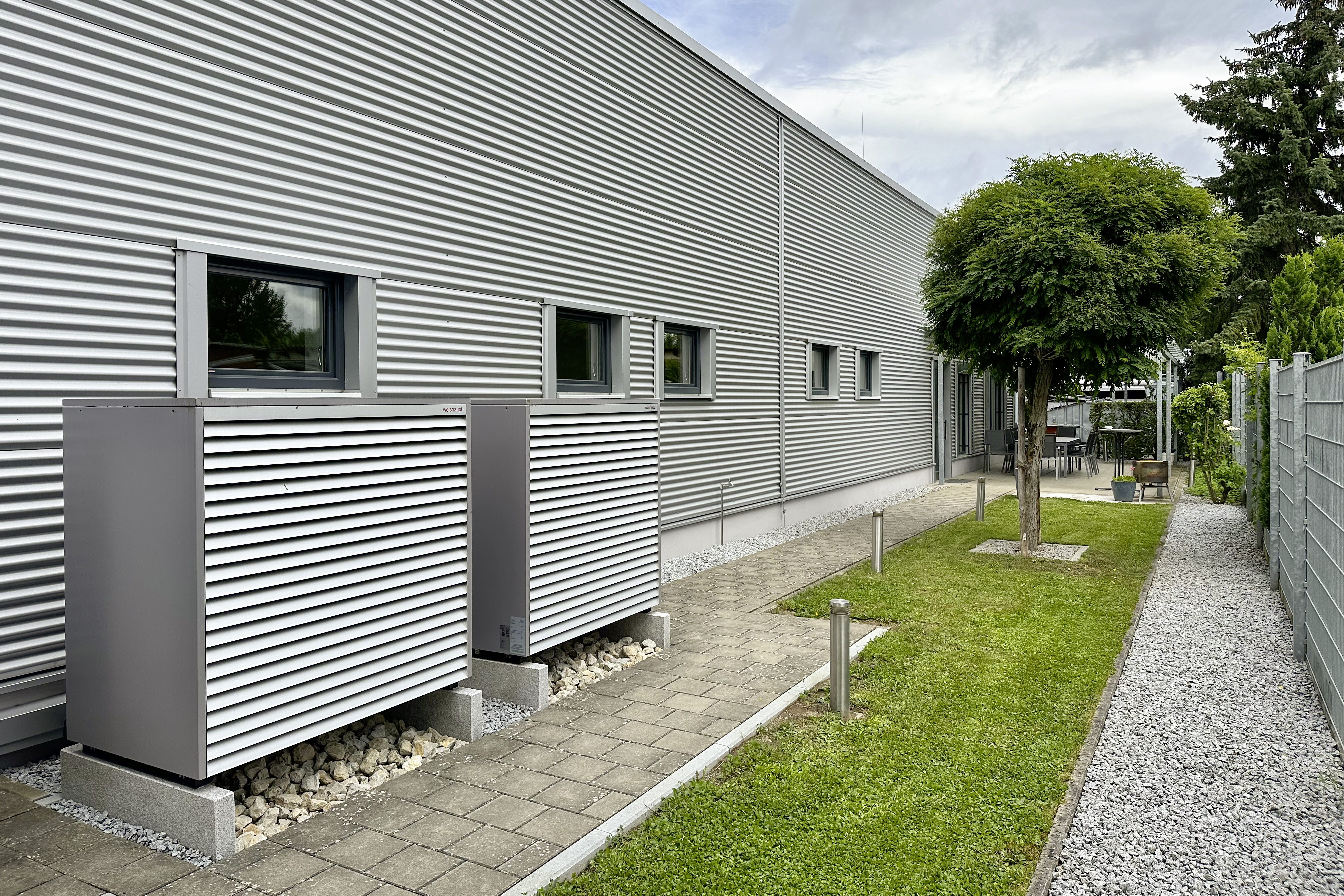 2. Désormais, une cascade composée de deux pompes à chaleur air/eau Biblock® WBB 20 de Weishaupt assure le chauffage et la climatisation du siège social. L'électricité renouvelable est fournie par une installation photovoltaïque équipée d'un accumulateur. Des bornes de recharge pour véhicules électriques ont également été installées sur le site de l'entreprise et sont accessibles au public.