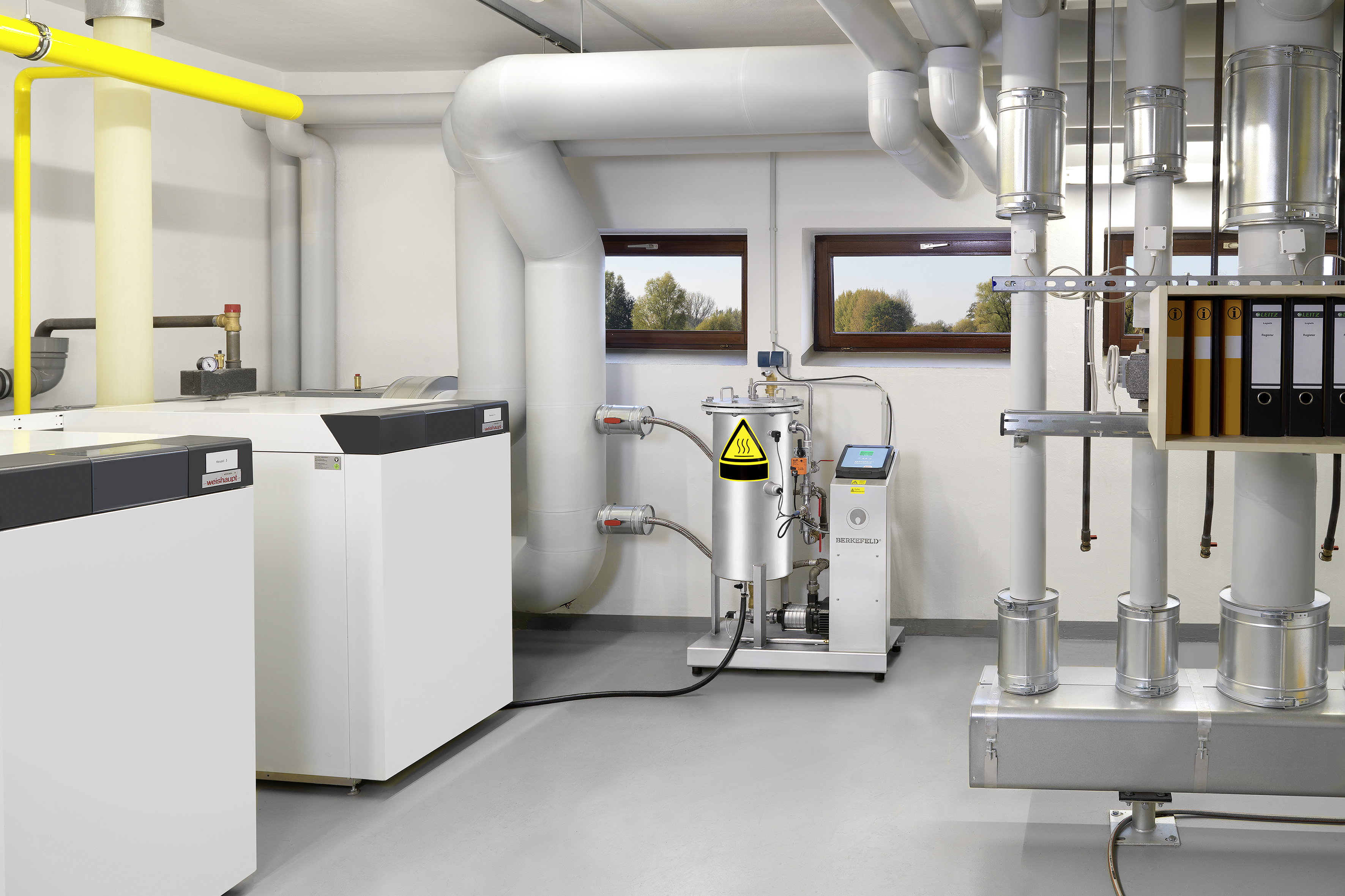 La dernière phase de travaux, « Riegel III », a été réalisée en 2016. Cela a été l'occasion de remplacer complètement le système de chauffage. Les anciennes chaudières en fonte ont été retirées, seul le réseau de tuyauterie a été conservé. Un tout nouveau système de chauffage a été installé : chaudières, composants hydrauliques, groupes de mélangeurs et technique de régulation. Le système fonctionne désormais avec une cascade composée de quatre chaudières à condensation au gaz Weishaupt Thermo Condens® WTC-GB 300 d'une puissance modulable de 57,7 à 1 160 kW.