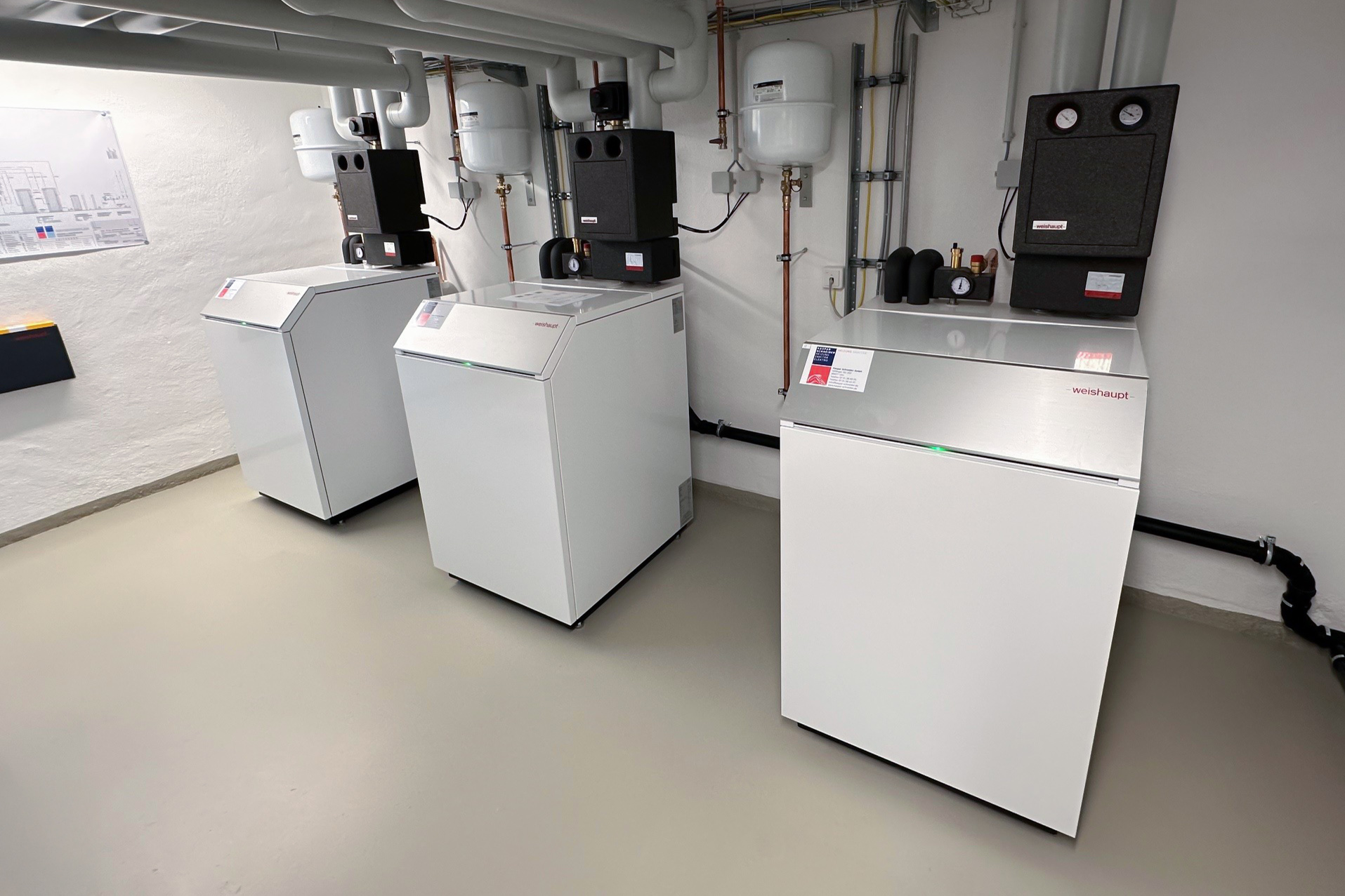 Les bruits de fonctionnement ont également joué un rôle dans la planification : l’UWS a délibérément opté pour trois pompes à chaleur Weishaupt Biblock® en cascade qui comptent parmi les appareils les plus silencieux du marché. La chargée de projet Sabine Schulte est très satisfaite du résultat : « Même lorsque les trois pompes à chaleur fonctionnent, elles sont étonnamment silencieuses. »