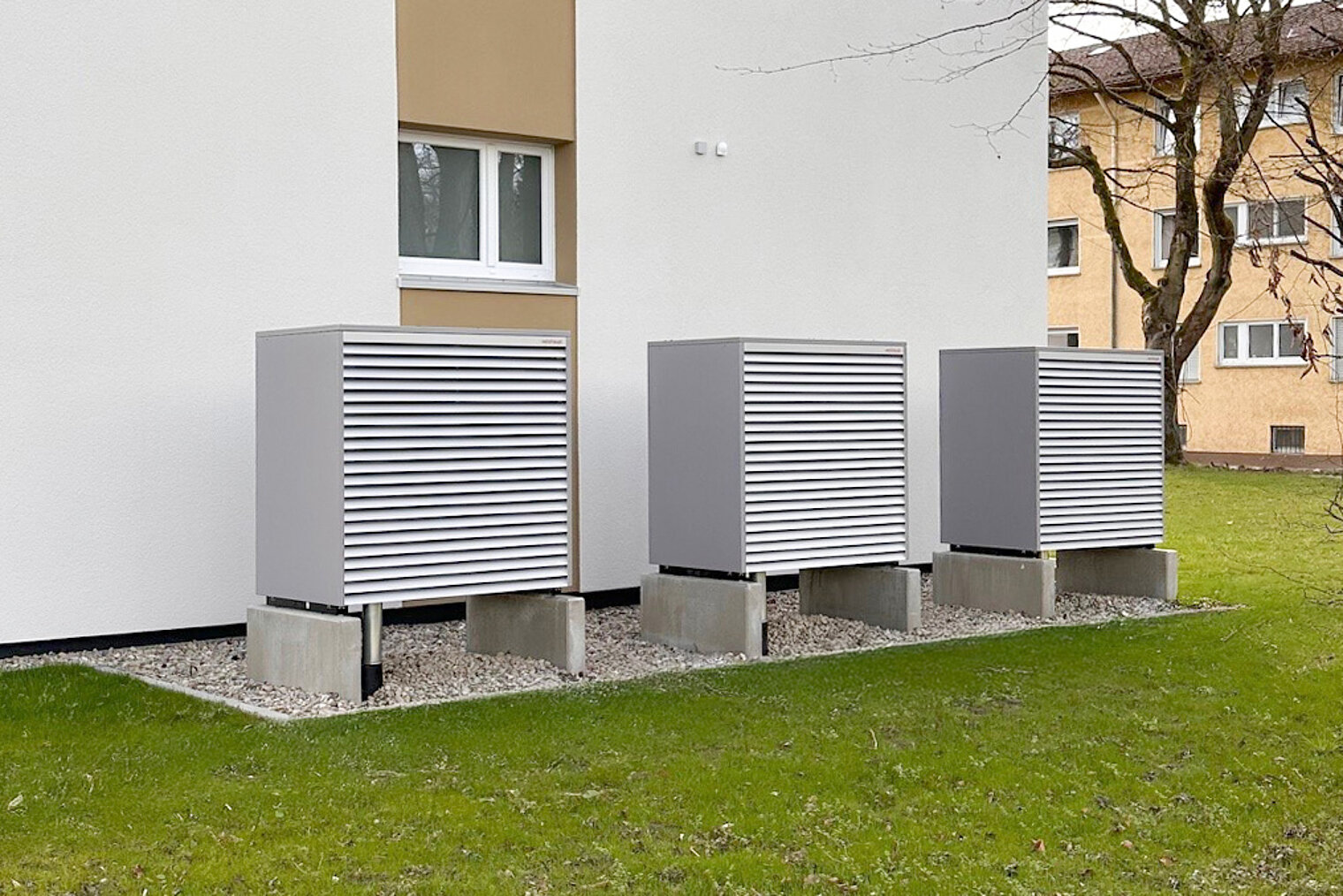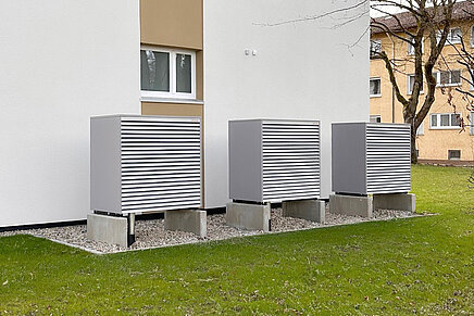 Les immeubles datent des années 1960 et comptent chacun 16 appartements, pour la plupart de trois à quatre pièces, qui étaient jusqu'à présent chauffés au gaz. Comme pour toute rénovation, l'UWS a d'abord vérifié si les bâtiments pouvaient être raccordés au réseau de chauffage urbain. Cela n'était pas possible dans le Pommernweg : la conduite de chauffage urbain s'arrête à quelques centaines de mètres. Il fallait donc trouver une autre solution. Le choix s'est porté sur les pompes à chaleur Weishaupt.